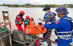 Prajurit TNI AL dan Tim SAR Gabungan Evakuasi Remaja Tenggelam di Sungai Kelay Kaltim