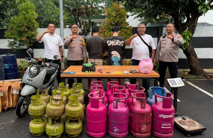 Adapun barang bukti yang berhasil disita yakni 5 tabung elpiji 12 kg kosong, 6 tabung elpiji 12 kg berisi hasil oplosan, 15 tabung elpiji 3 kg subsidi kosong, 1 tabung elpiji 3 kg masih terisi, 1 timbangan digital ukuran besar, 3 jarum suntik (alat oplosan), 469 segel tabung gas 3 kg warna hijau/biru, 29 segel tabung gas 12 kg warna kuning, 360 karet tabung gas, 82 kantong plastik bening sisa pembungkus es batu, 1 sepeda motor Yamaha Vino, 3 handphone, dan 1 buah obeng serta perlengkapan lain.