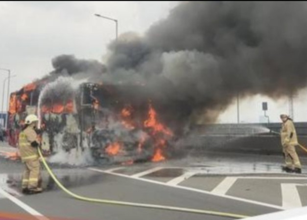 News24xx.com - Sebuah bus pariwisata hangus terbakar di Tol Wiyoto Wiyono arah Tanjung Priok, Jakarta Utara, Rabu (12/6/2024). Saat kejadian, bus tersebut membawa 54 orang penumpang namun dilaporkan tidak ada korban jiwa.