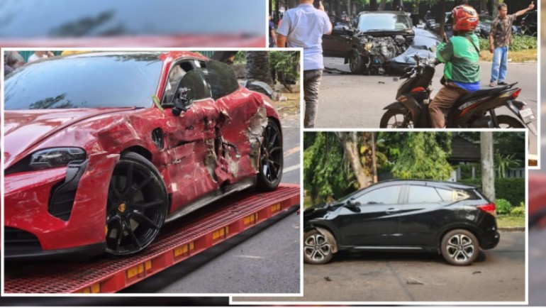 Diketahui, Tabrakan terjadi saat keduanya Porsche dan Honda HRV bertemu di perempatan. Kedua mobil saat itu berlainan arah.