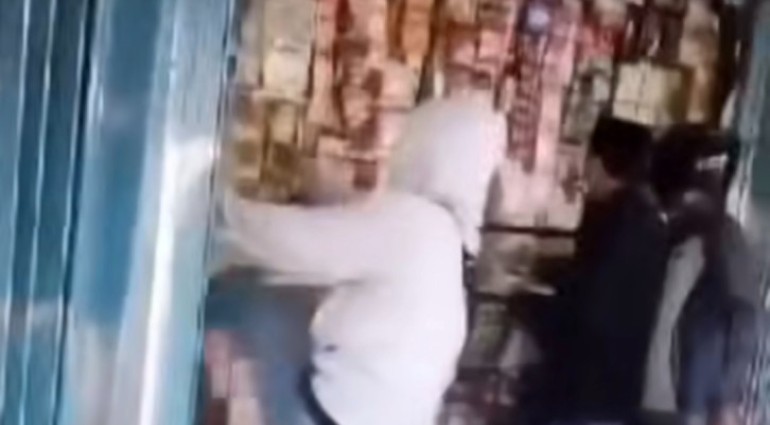 Berdasarkan rekaman video yang beredar di media sosial, terlihat warga mendorong etalase toko secara terus menerus.