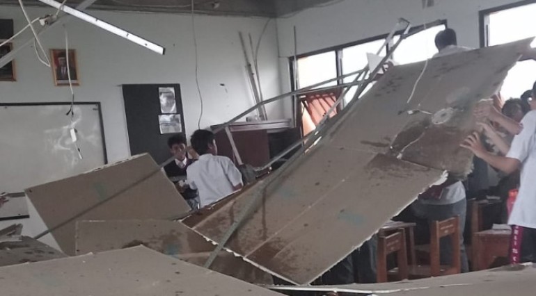 Plafon Ruang Kelas Runtuh Diterjang Hujan Angin, Puluhan Siswa SMA di Bekasi Terluka