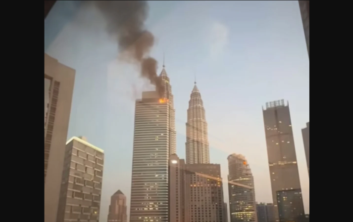 Dalam sejumlah foto yang beredar, tampak api berkobar di bagian atas gedung disertai kepulan asap hitam pekat yang membubung tinggi ke langit. Di latar belakang terlihat jelas Menara Kembar Petronas, ikon kebanggaan Malaysia.
